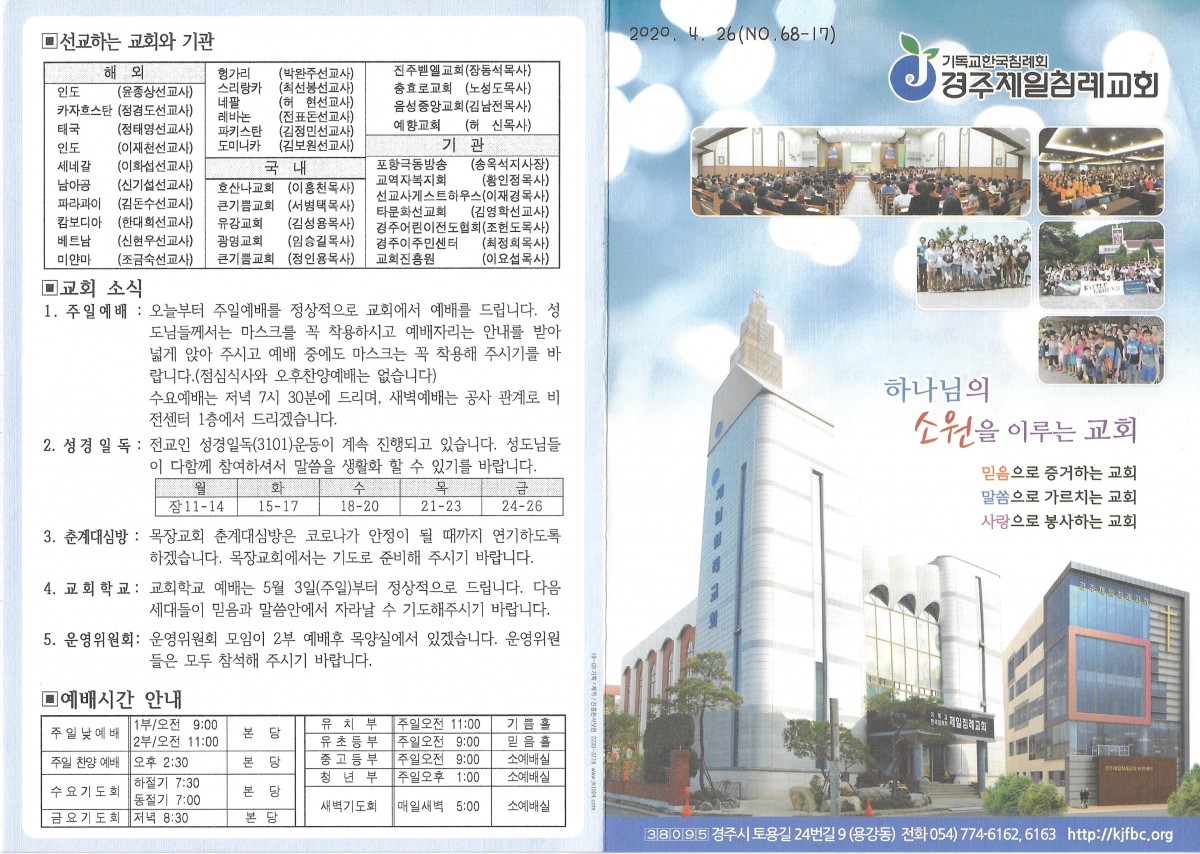 2020년 4월 26일 교회주보
