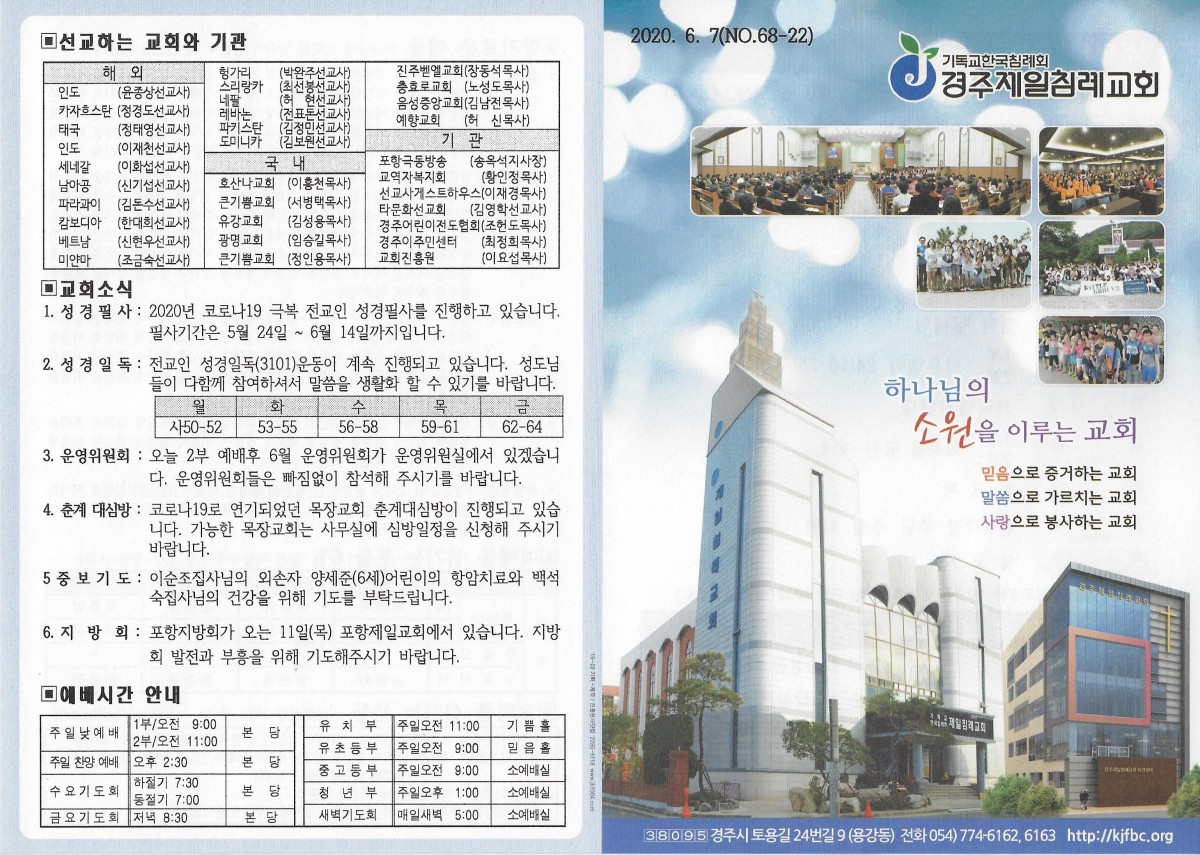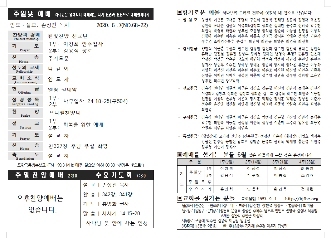 2020년 6월 7일 교회주보