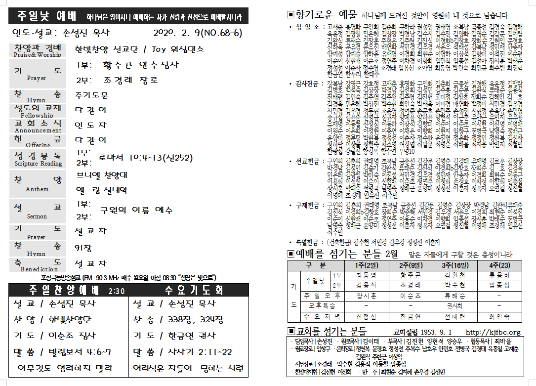 2020년 2월 9일 교회주보